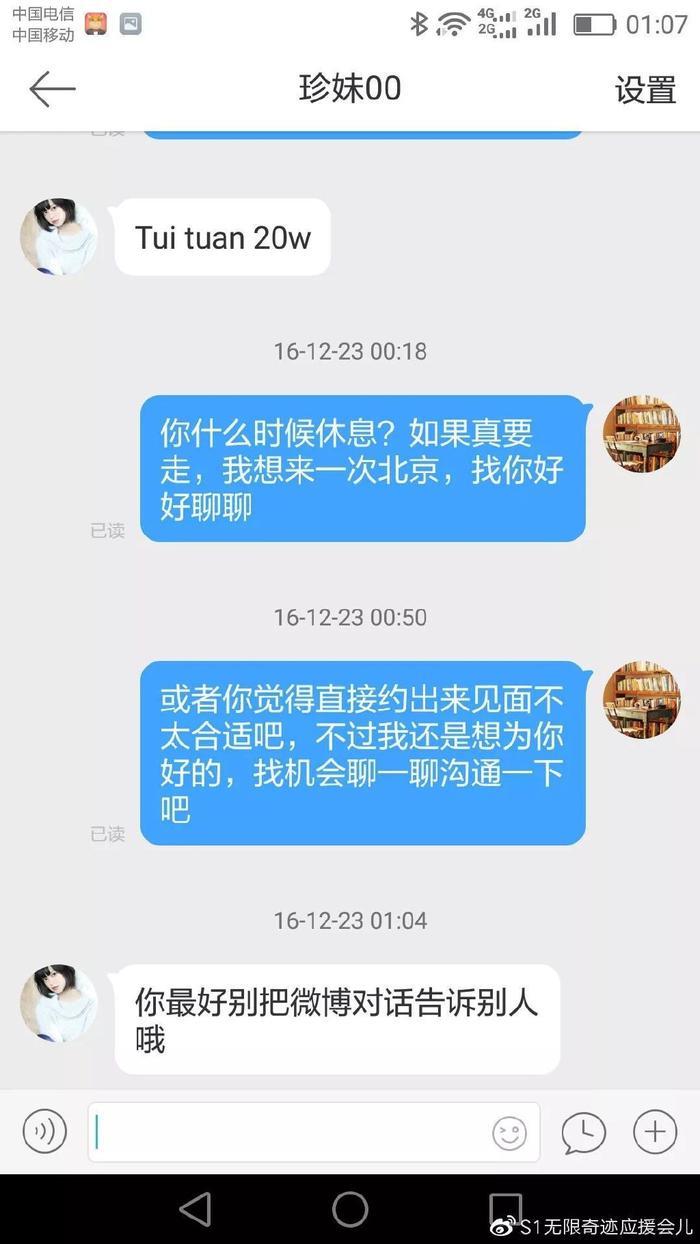 发现陈美君的小号之后,他就经常给她发私信聊天,一来二去的,甚至开始劝陈美君退团过小日子。