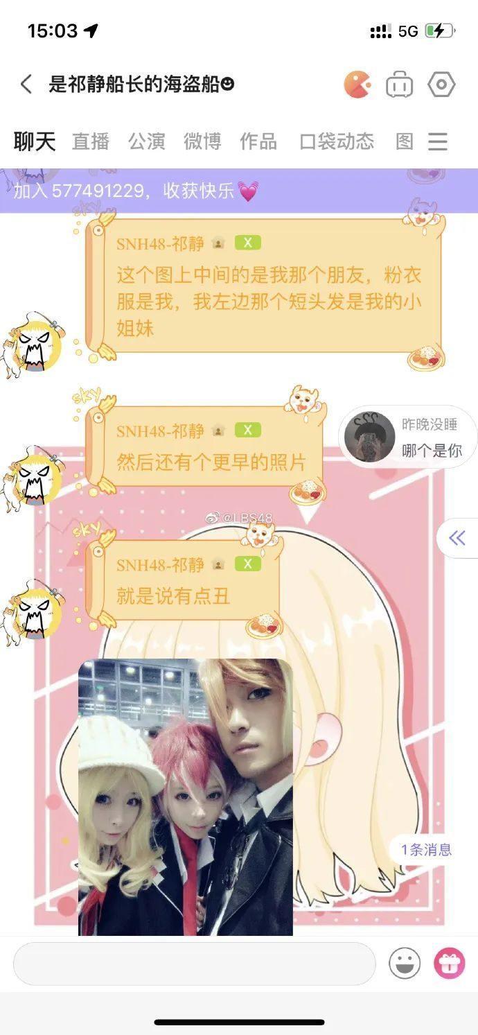 去年十月,一张包括祁静在内两男两女在床上的合影被发到了她的聊天室里,当时在粉丝群里就炸了。