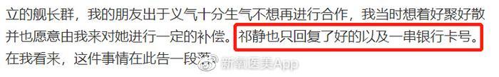 他退出了祁静的应援会和她直播后成立的舰长群,他的朋友(就是那位签下祁静的公司老板)也表示不想再跟祁静合作了。