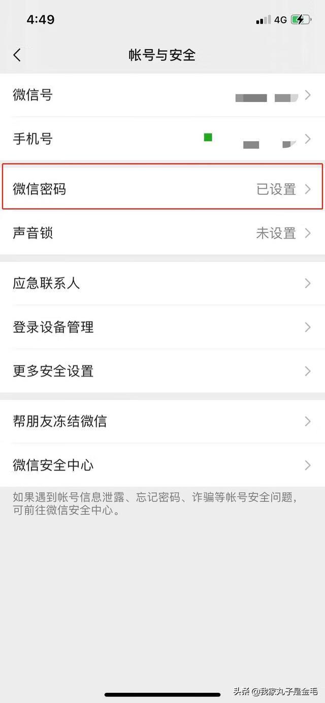 6、接着我们来修改微信密码,返回“账号与安全”界面,点击“微信密码”,如下图所示。