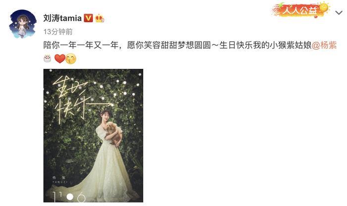 另外,《欢乐颂》五美里的其他几位一定不会缺席发文为杨紫庆生,目前刘涛是第一个,祝福语还很诗意:陪你一年又一年,愿你笑容甜甜,梦想圆圆!