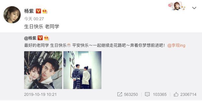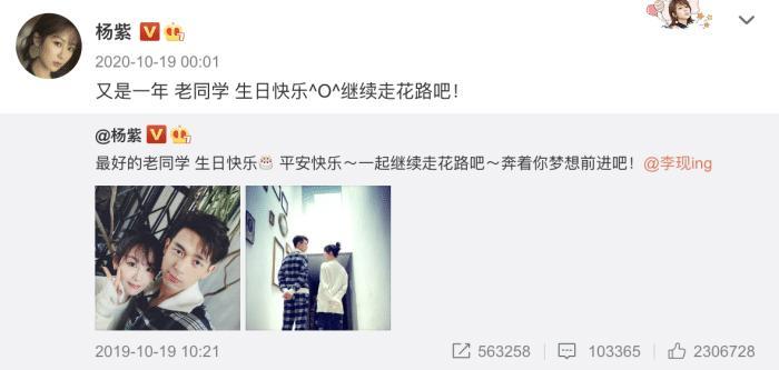 而杨紫也是连续三年为李现庆生,不过每次都是转发了19年的动态,估计明年也是。