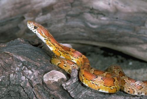 玉米蛇是种温顺无毒,具有观赏性的宠物蛇。全长80~120厘米,最长可达182厘米。颜色很多,通常可见到灰色、灰褐色至土黄色、橙色等。以这些颜色为底色,上有镶黑边的红或红褐色斑纹。腹部上有浓淡相间的方格状斑纹,尾部腹面位置则呈直条纹状。部分灰色的个体,在腹部有黑色的方格花纹。
