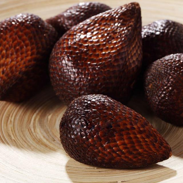 蛇皮果的外形如蛇皮而得名,别名沙叻,总共14种,我国云南西部分布有一种。果肉呈瓣状,咬起来比较爽脆。是东南亚著名水果。果肉外表有点像榴莲,核比较大一点,但味道也很不错,偶然可以在生果店看到,但价钱并不便宜。