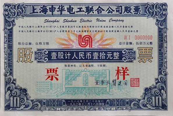 上海申华电工联合公司是于1987年开始想社会公开发行股票的公司,当时每股金额100元,总计金额为100万元,[bai]是上海郊区唯一一家面向社会公开发行股票的股份制企业,并于1990年正式上市进行交易,并于1992年改名为上海申华实业股份有限公司。