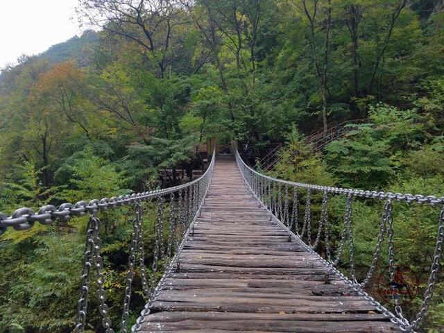 在秋天,龙道沟的红叶漫山遍野连成一片,树林里的秋千非常惬意休闲,还有瀑布、吊桥非常美!自驾车可以一直开到瀑布。龙道沟沿着木栈道上行就可以看到瀑布,森林里五彩缤纷,溪水潺潺,沿路的枫泾美得没朋友,五角枫、七角枫、九角枫都有。同时,旁边的太阳沟也是火红一片,名副其实,你就在五彩斑斓的大花园里,真是人在画中游,画在眼前浮,真的让人流连忘返。
