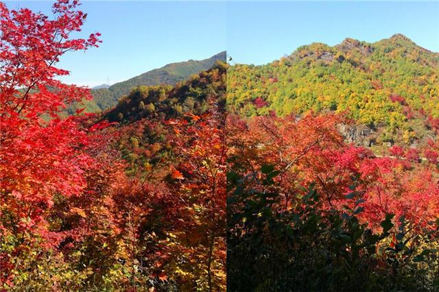 另外,本溪的湖里风景区,其实是个有山有水有枫林的地方。跟老边沟的风景有一些不一样,是一种别样的美。在山间之中,两边都是大山,中间也有一条清澈的河流,很有一番韵味。这里也算是一个烟雾缭绕,静怡的小山村,蜿蜒的河流,清澈的河水,暖暖的河边大石,丰富的野生植物,色彩斑斓的山川,红叶五彩艳丽,峰岭跌宕,层林尽染。