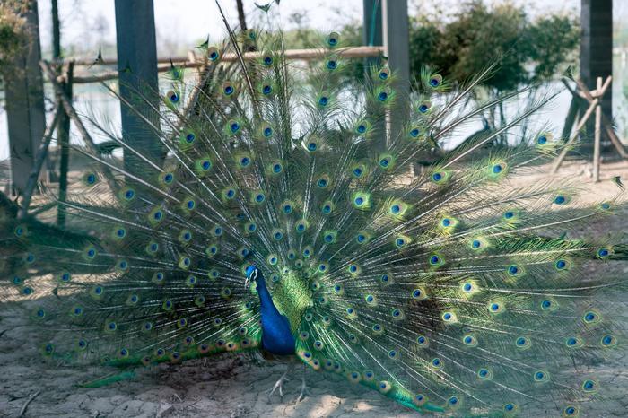 之前也曾在很多地方看到过孔雀,但很少看到孔雀开屏时的画面,没想到第一次到这里时就看到了开屏下的孔雀,简直太美了,让人惊艳。