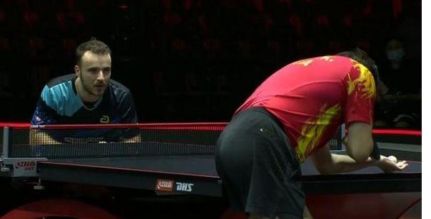 第三局梁靖崑三板就加质量,明显提速,但又有两个自失,侧拉一板也丢,西蒙后退中反撕中路,挑打得分后,以5比4反超,局面稍显被动,梁靖崑倒是更加主动,反手连续拿分,西蒙运气可以,擦边又擦网,最终梁靖崑拧拉得手,以11比7拿下。第四局西蒙接发搏得很凶,梁靖崑也不怵,发抢回敬,西蒙被迫暂停,回来梁靖崑因为过凶也有自失,西蒙摆短下网后,梁靖崑8比4拉开,随后利用西蒙三板送分到赛点,最终大胖挑打拿下,11比5,梁靖崑3比1击败西蒙高茨晋级。