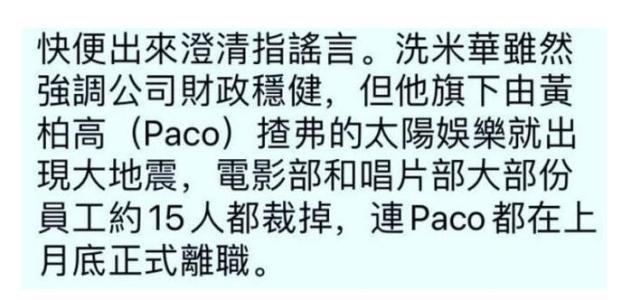 简单说,洗米华的公司早已入不敷出,资金链开始断裂,甚至还裁掉了不少员工