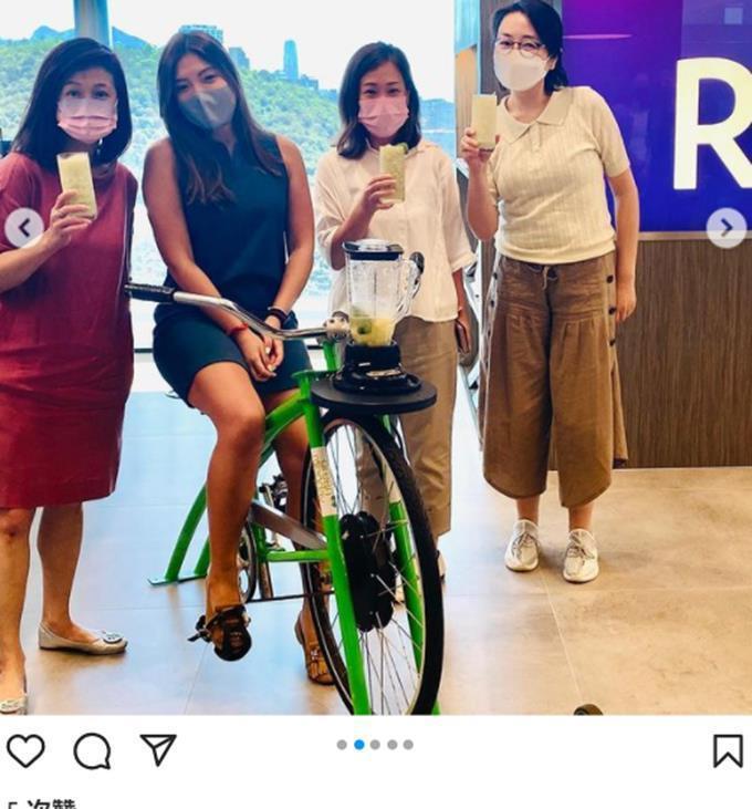 照片中,关佩琳与朋友约好在餐厅吃奶昔。这里的奶昔制作过程非常有趣。你需要先骑自行车发电,榨汁机才能运转,最后才能做出美味的奶昔。