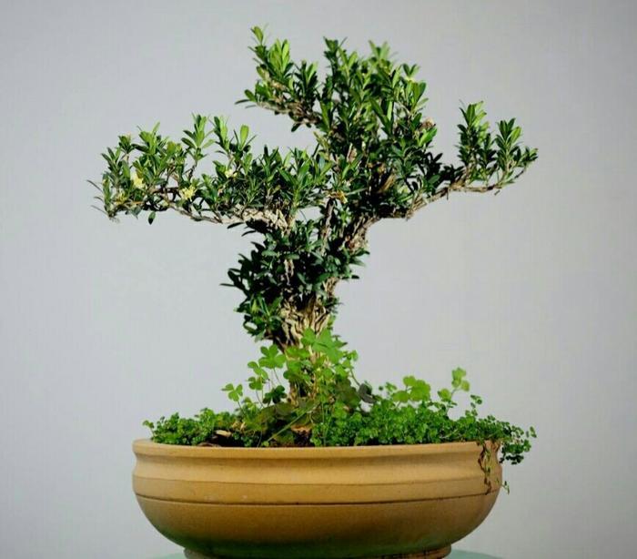花盆选择黄杨树姿秀美,四季常绿。在选盆时可考虑紫砂陶盆,颜色以棕色或浅黄为好。盆形可根据黄杨的树形而定。制成悬崖式可以考虑用深千筒盆,曲干式和斜干式可使用长方形的盆。