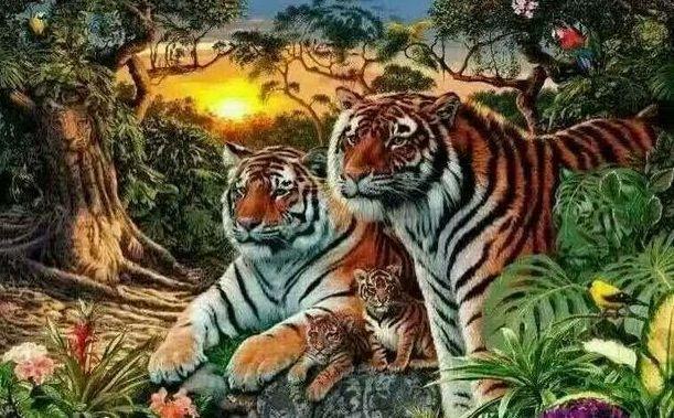 2、老虎一家人在美丽的丛林里面休息,小编只看到了4只老虎,据说还有更多的老虎在里面,你能发现几只?