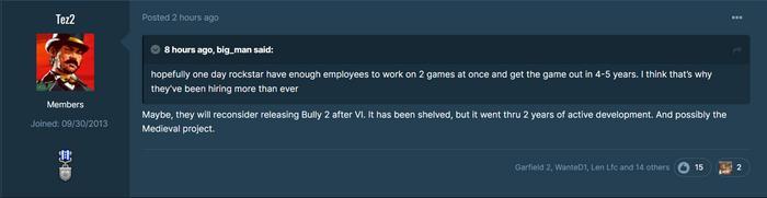 根据 Rockstar Games 内部人士 Tez2 的说法,开发者有可能在完成 Grand Theft Auto VI 后重新致力于《恶霸鲁尼 2》的开发工作,这意味着新作可能会带来一些惊喜,例如继承其他游戏的一些系统,以帮助简化流程。