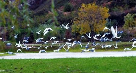 2、兰州新区黄河湿地公园:这是一个美丽的湿地公园,拥有广阔的湖泊和绿色的草地。