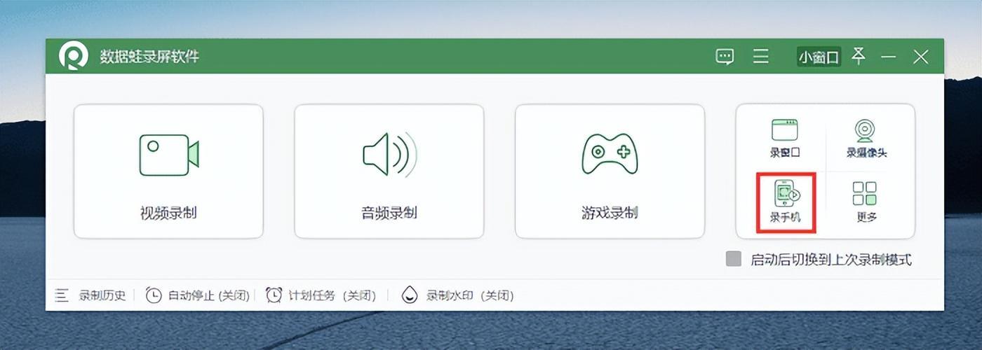 第1步:在电脑上下载数据蛙录屏软件,打开进入主页,在主页选择自己需要的录制模式,我们选择录手机模式。