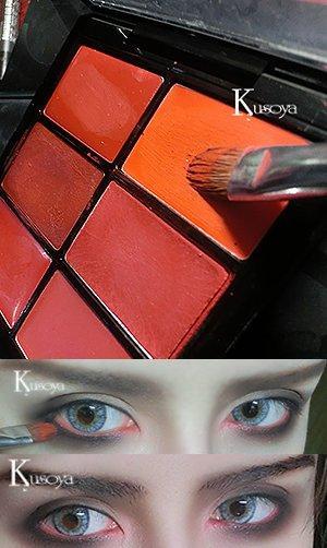 橘红色的唇膏当眼线用喽。还是涂抹在下眼尾。血色感突然出来了吧。