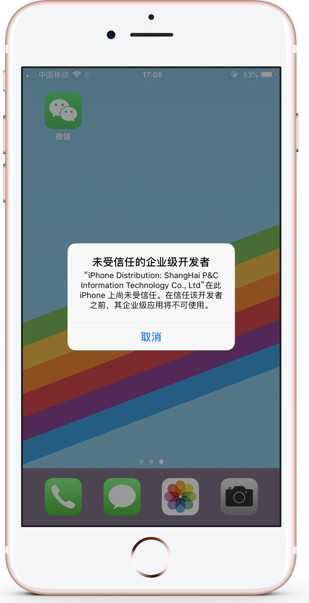 在手机设置-通用-设备管理,信任该证书,再返回下载的微信就能正常登录了。