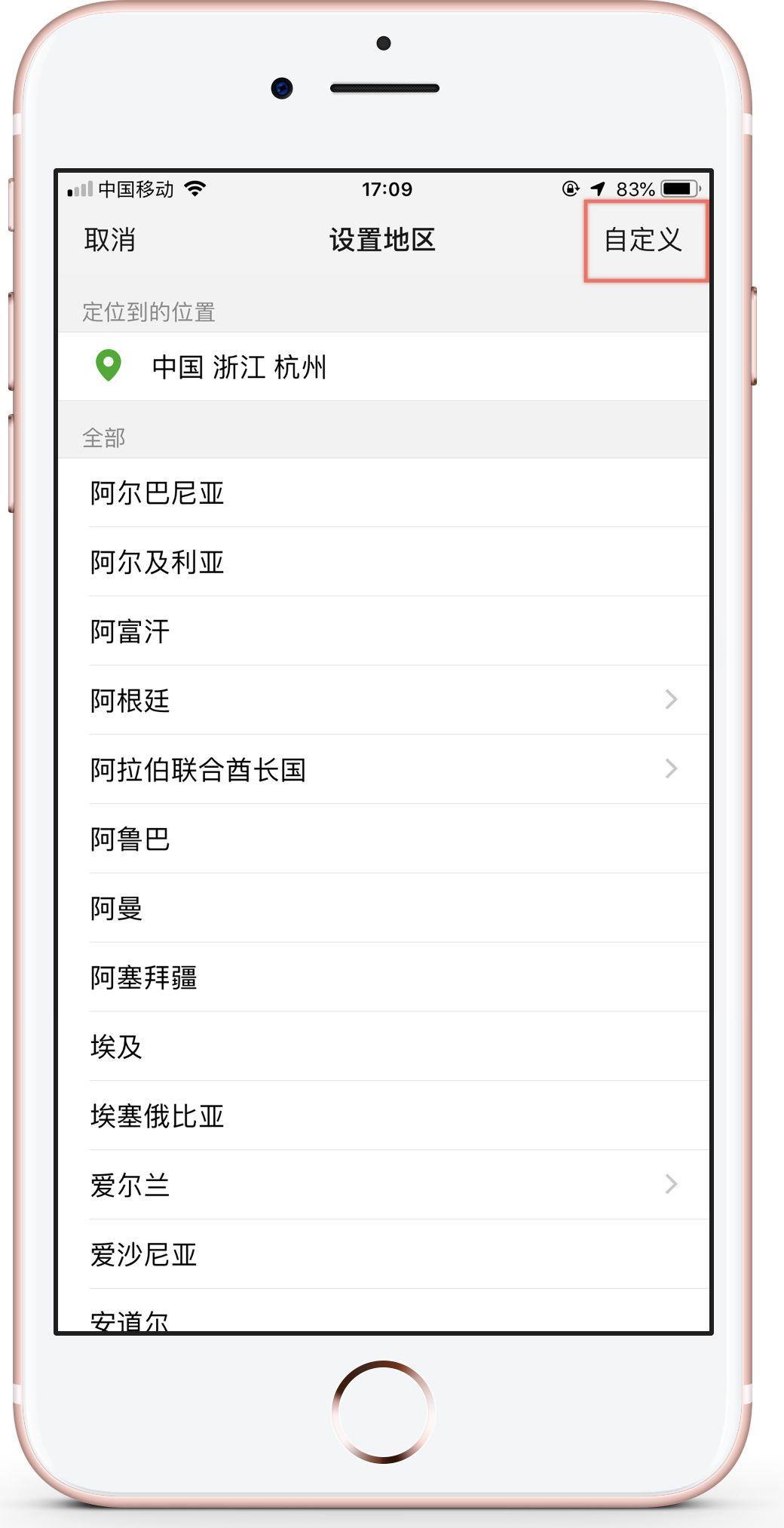 登录后,进入「个人中心」-「更多」-「地区」,点右上角的「自定义」任意输入想显示的名称,返回就修改成功了,然后马上退出账号,登回微信官方App。