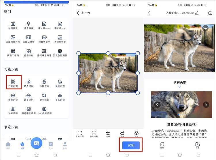 我们打开手机上的【迅捷文字识别】APP,这是一款手机端的专业的识别软件,基本上万物的识别它都可以完成。我们打开软件,点击选择【万能识别】,导入需要识别的图片(最多可识别三十张),一会儿我们就可以看到识别的结果了。可以看到有原图和相似图的对比,然后我们点击【复制】或者【分享】内容。