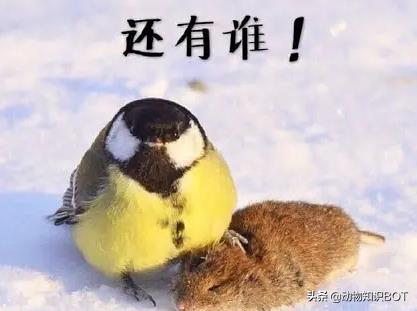 实际上,大山雀就如自身的造型一般,就是一种好斗的“社会鸟”。而它最好欺负的猎物之一就是鼠类,所以素有“虐鼠狂魔”的称号。凭借一张暴打老鼠的嚣张造型,使得大山雀火遍鸟界。