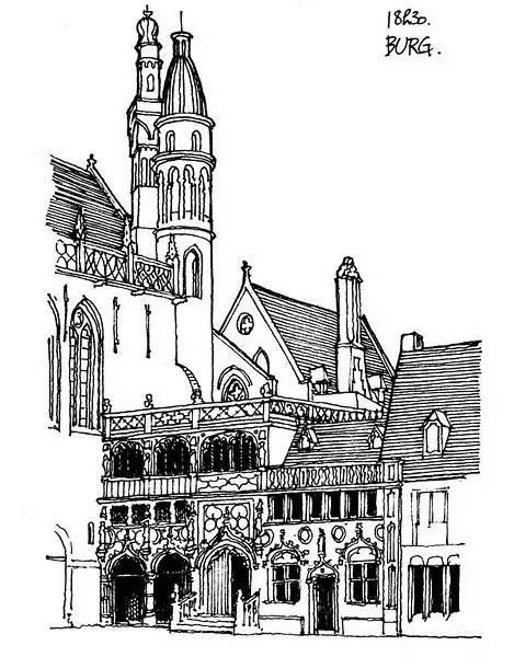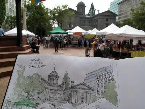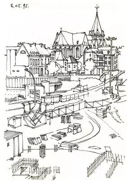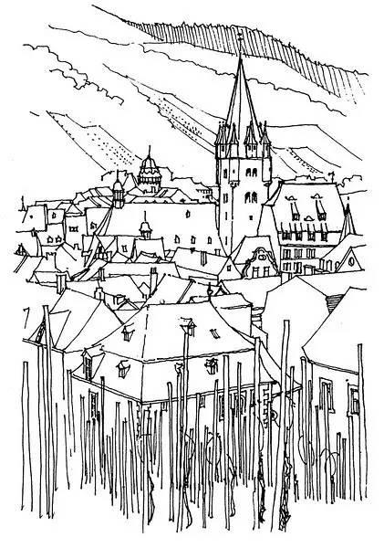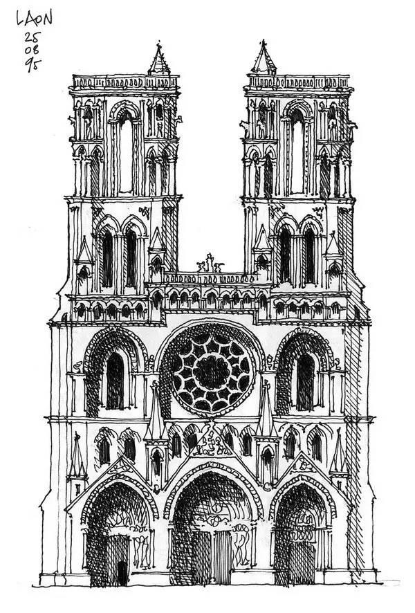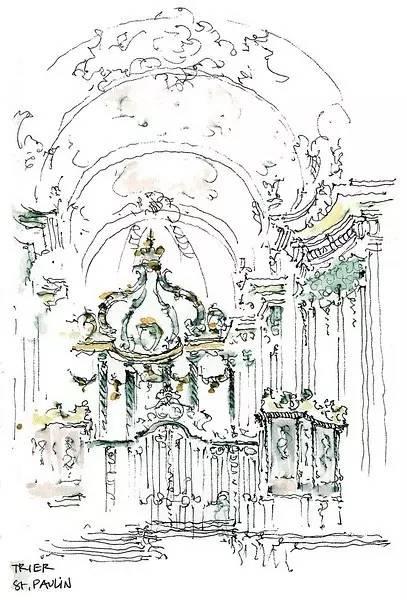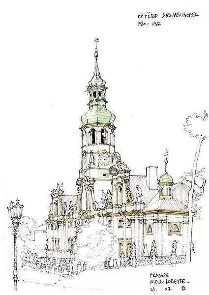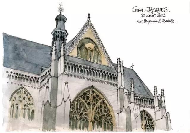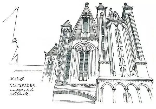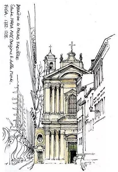 钢笔淡彩的绘画除了记录,还起着分析结构的作用。我们可以透过画面了解建筑的样式和特点。
