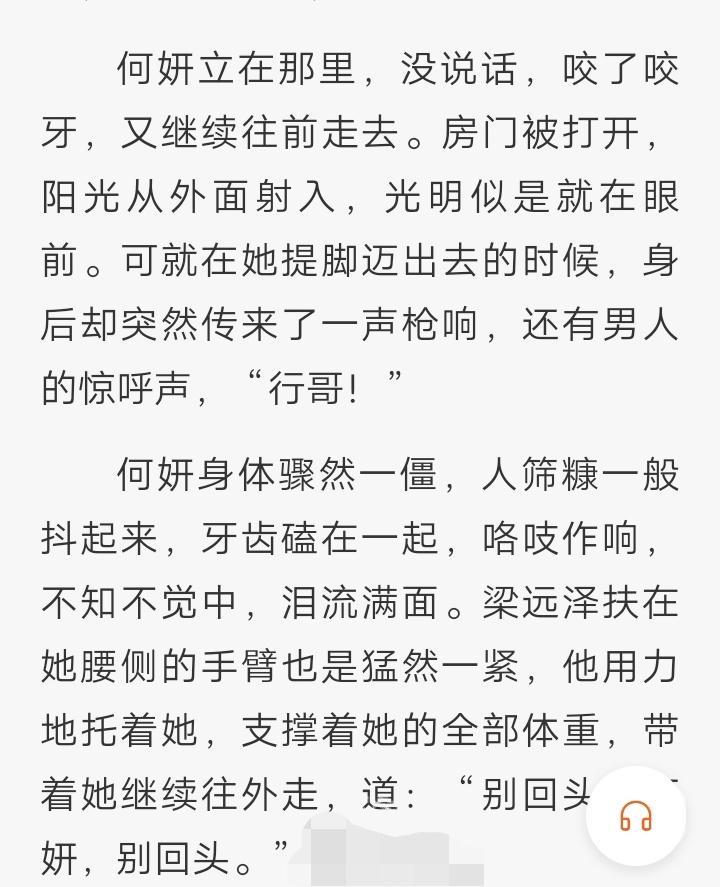 第二个地方是傅慎行找来梁远泽放何妍他们离开,对何妍说,阿妍,别回头,一直往前走,永远别回头,随后一声枪响,何妍知道是傅慎行自杀了,这时候她是开心的吗?我觉得并不是,她泪流满面,浑身颤抖,她内心深处并没有希望他死。