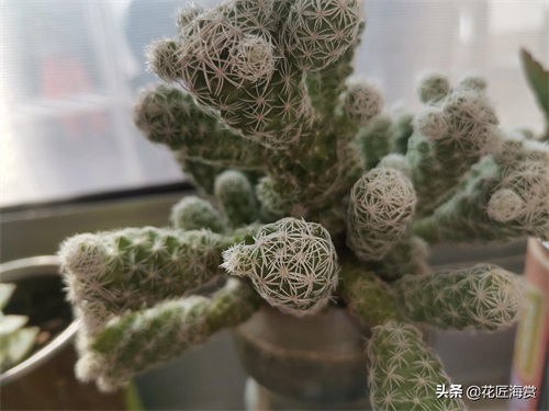 这是一棵仙人掌系列的植物,它翠绿的支竟长满了白色的肉体,像是预示着保护自己,它代表着力量。