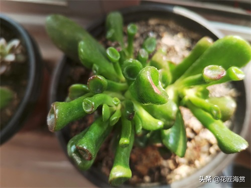 玉坠叶片厚实饱满,犹如一颗颗翠绿的玉石晶莹剔透。