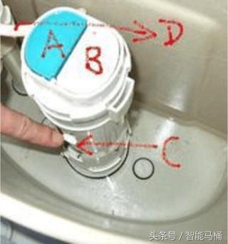图示为排水阀,属于马桶的配件,A和B是排水阀主体上面的两个面板,A是冲小便的按板;C是小排的调节开光,可以调节冲小便时的冲水量;D是进水阀的一条补水管,正常是插在排水阀的溢流管上面,主要作用是为马桶冲完谁后补充水量(这里会有一个需要达到的水封,如果水封不达标的话容易漏气产生臭味)。