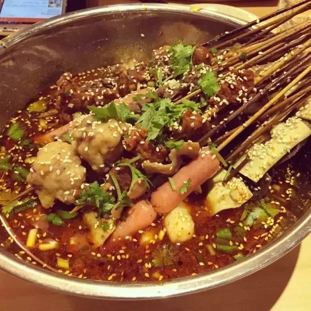 图上的串串就是非常有名的一家,就在动感对面那条街的第一家摊子,后面就是卖冰糕的。这家串串虽然辣的有点霸道,但是香!盆盆一端上来,筷子就坐不住了,辣了喝口唯怡,简直爽翻!强烈推荐!