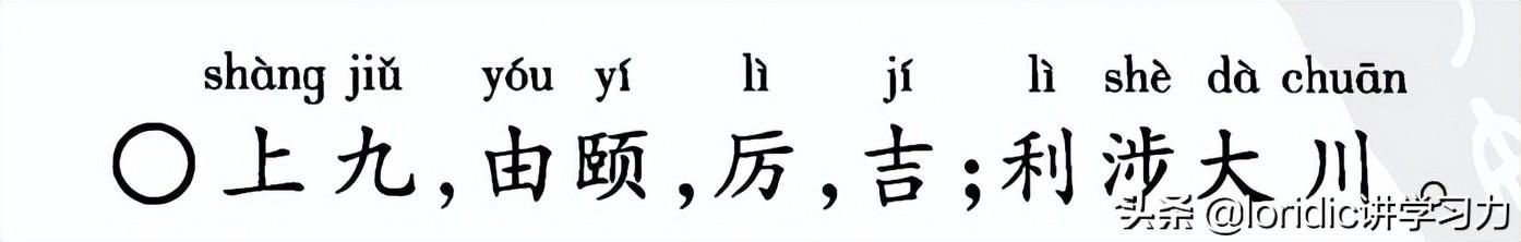 上九,凭借颐养,虽然危险但吉祥,利于渡过大河。