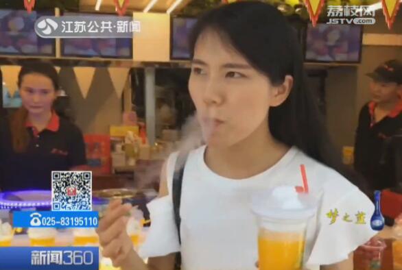今天上午,记者在南京夫子庙看到至少有三家店铺在销售冒 烟冰淇淋,“-196℃的美味,-196℃液氮现场制作”,“网红冰淇淋,吃完会冒烟”,宣传标语大多醒目而诱人。记者留意到,店员往锅中倒入液氮,液氮便沸腾起来,加入奶油球,浸泡一分钟左右,即可捞出食用。