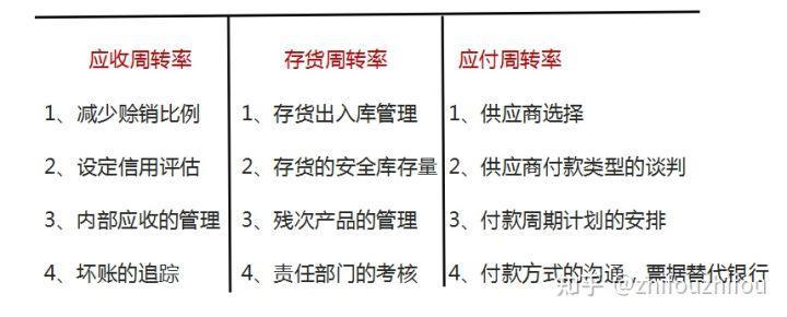 提高应收周转率+存款的周转率+延长应付的周转率