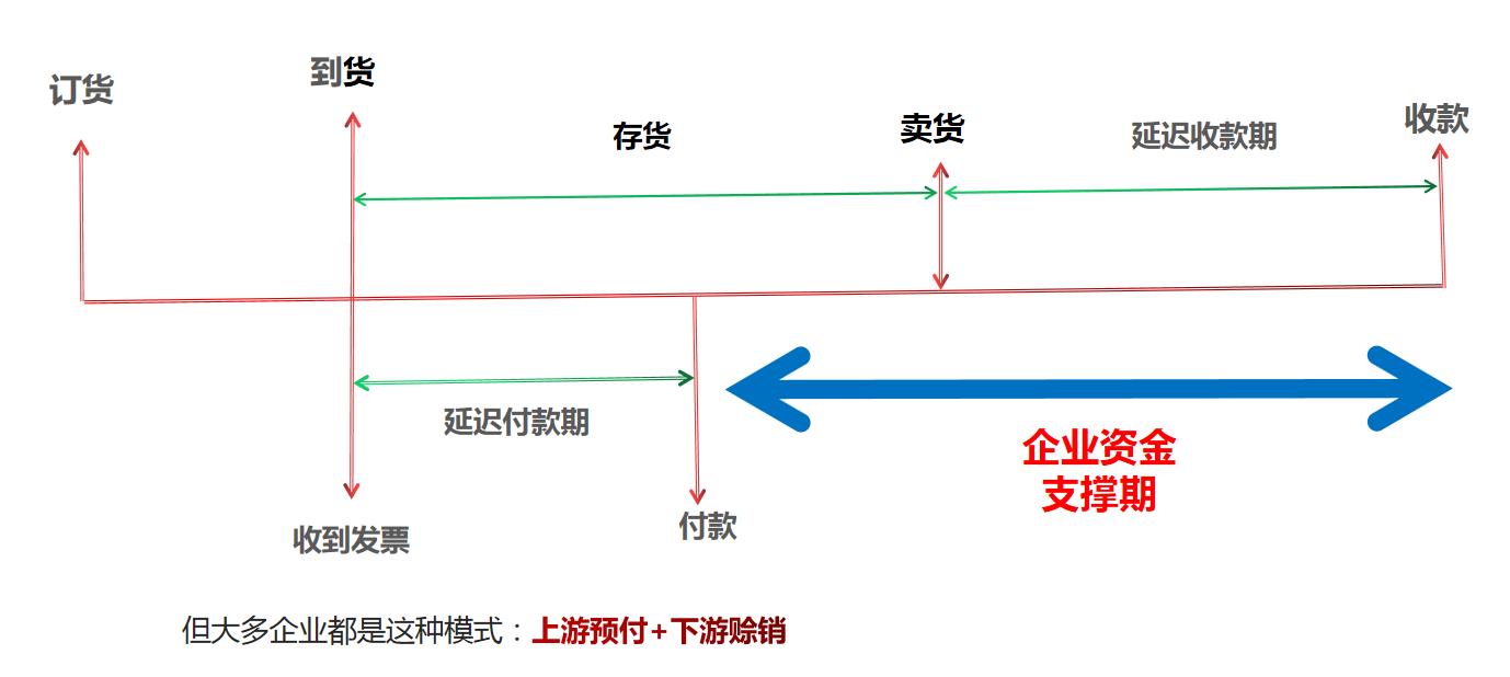 但,这是理想的状态,现实往往是上游要先打款,下游要赊账,企业中间要垫钱;