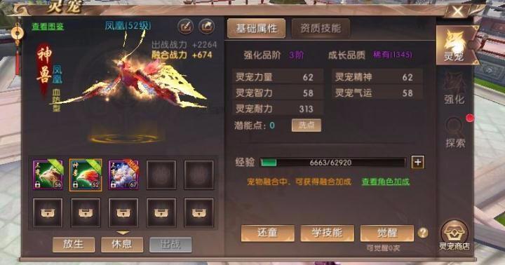 不同于系统出售的宠物蛋孵化出的宝宝,凤凰的阶位不是一变二变三变,而是神兽。虽说凤凰的真实成长也并不能说是超凡脱俗,但是比起35级宠物要告上一个档次,经过对比之后可以发现凤凰的属性已经距离55级宠物相去不远了。