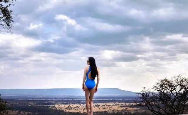 照片中,张雨绮身穿Klein蓝色连体泳衣。镂空的设计在她的身前就像一道美丽的风景线,充满了时尚感和时尚魅力。长发如瀑布般垂落至肩,更添女神气质。