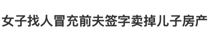先看第一位:女子找人冒充前夫签字,卖掉前夫登记在亲儿子名下的房子