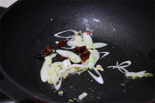 5.炒锅加热,倒入食用油,煸炒炝锅带出香辣味。