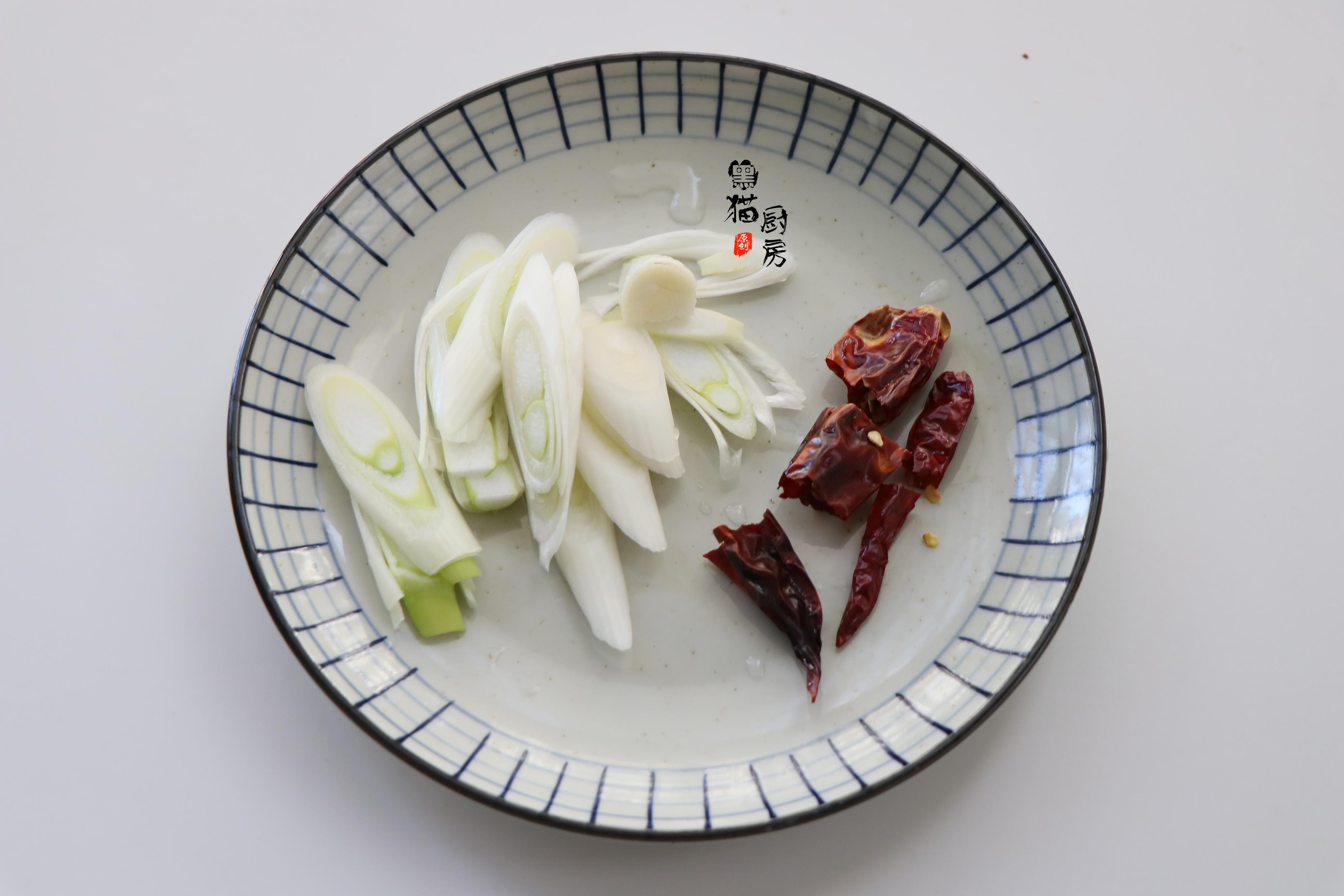 食材:黄豆芽200克,干辣椒2个,大葱段,油、盐、陈醋各适量。