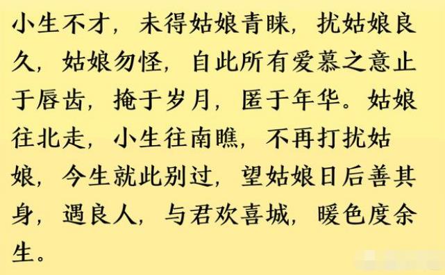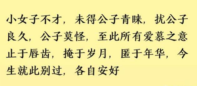 小女子不才,不知先生心早已所属,经此一别,自是永不相见,愿先生万水千山,自当珍重。