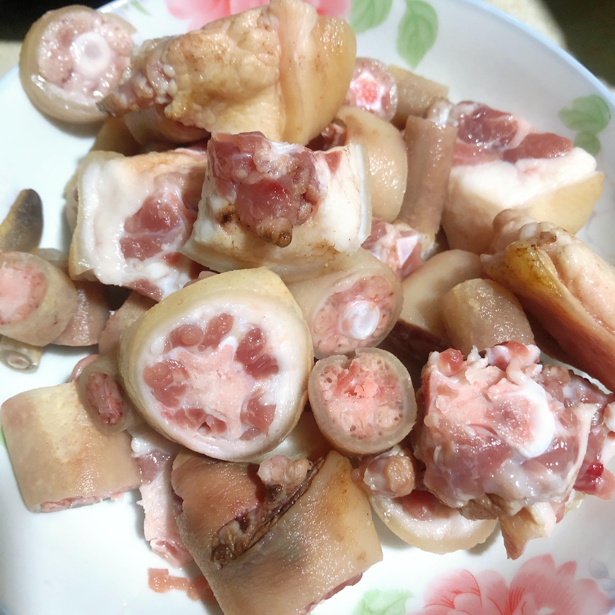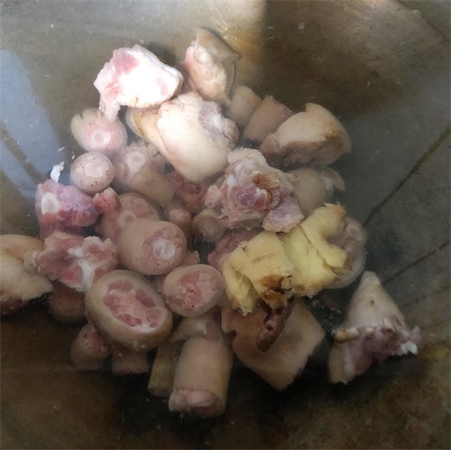 猪尾下锅焯水(叮咚~~~:要放生姜料酒去腥哦,也可来点葱结一起焯,去腥效果更好,小编不喜葱没放。)
