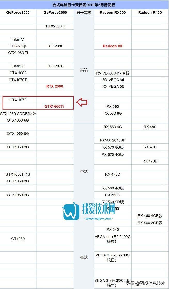 最后附上,GTX1660Ti显卡在天梯图中的排名,可以更为直观的了解显卡性能以及和其它显卡之间的性能关系,如下图所示。