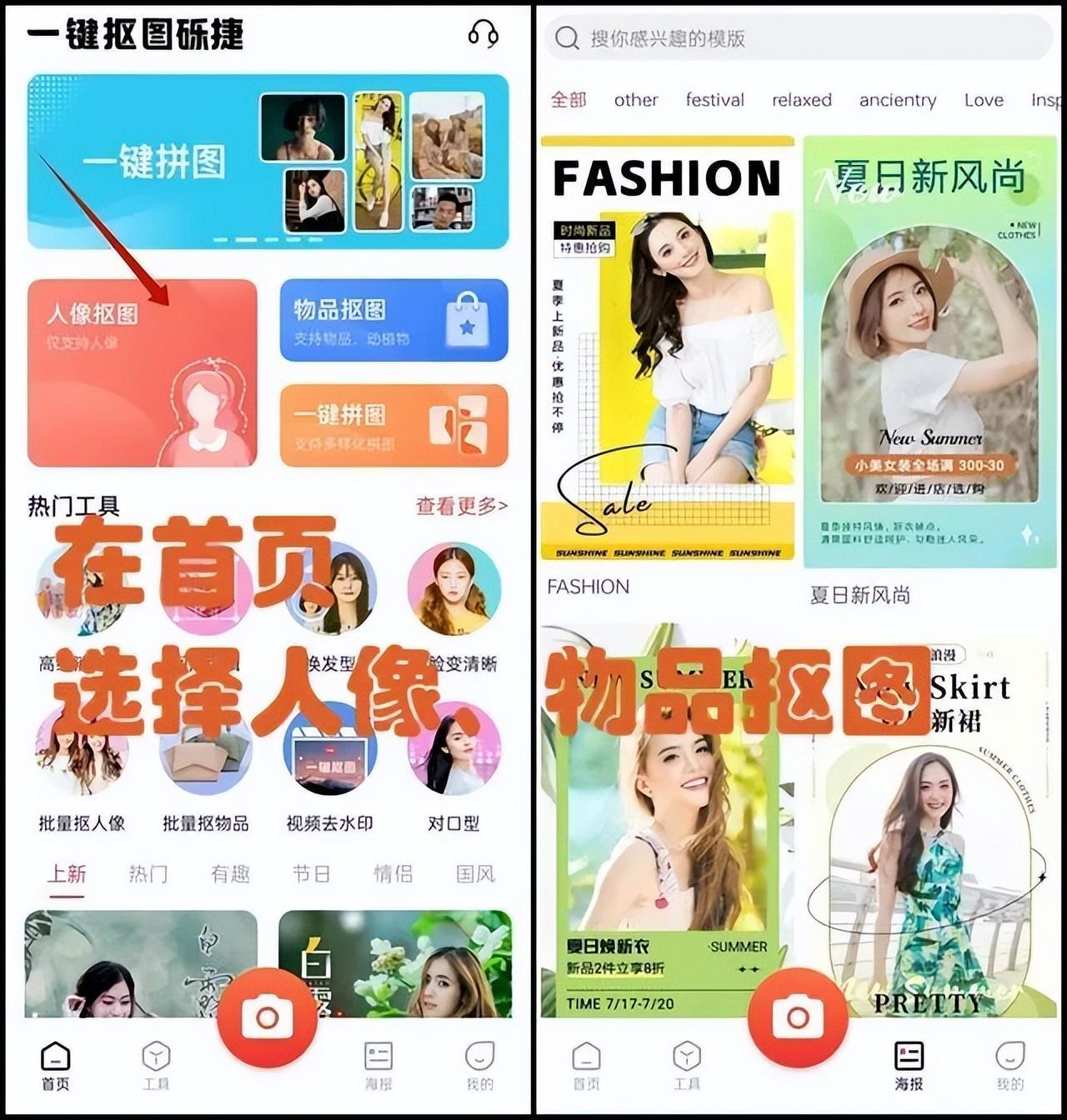 打开软件,选择【人像抠图】或【物品抠图】功能,上传图片就能完成抠图;