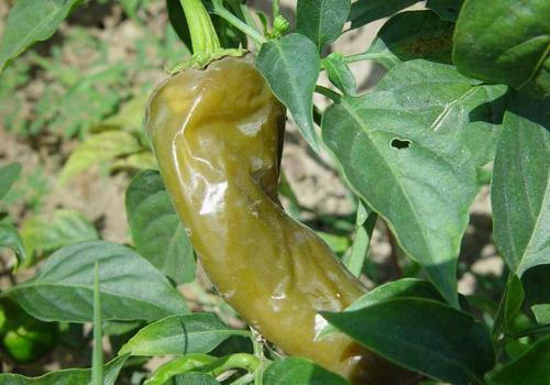 辣椒软腐病是一种主要为害果实的疾病。病果初生水浸状暗绿色斑,后变褐软腐,具恶臭味,内部果肉腐烂,果皮变白,整个果实失水后干缩,挂在枝蔓上,稍遇外力即脱落。