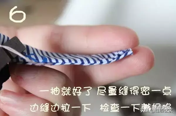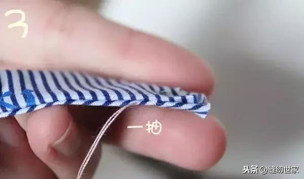 一抽就好了,尽量缝得密一点,边缝边拉一下,检查一下就好咯~我们尽量缝得密一点这样才能牢固呢~