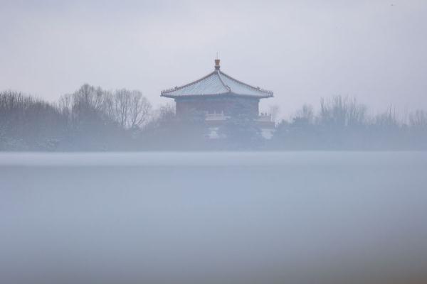 ↑12月11日早晨,人们在景山公园游玩。新华社记者 李鑫 摄