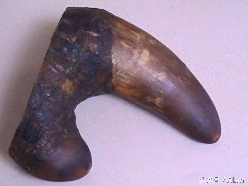 10、犀牛角区分其它牛角的另一个显著特征,就是犀牛角(亚犀非犀都具有)的纵向纹路永远是直的且相互平行,即便是因年代的久远而出现开裂,也不会出现如其它牛角般那样的交叉网路。犀牛角的横断面,虽有年轮,但因纵向纤维纹路是相互平行的结构,所以反映于横截面上的现象是:对于亚犀被称做“鱼子纹”;对于非犀被称做“甘蔗纹”,行内人士都统称叫“鱼子纹”。而其它牛角则没有这种特征。