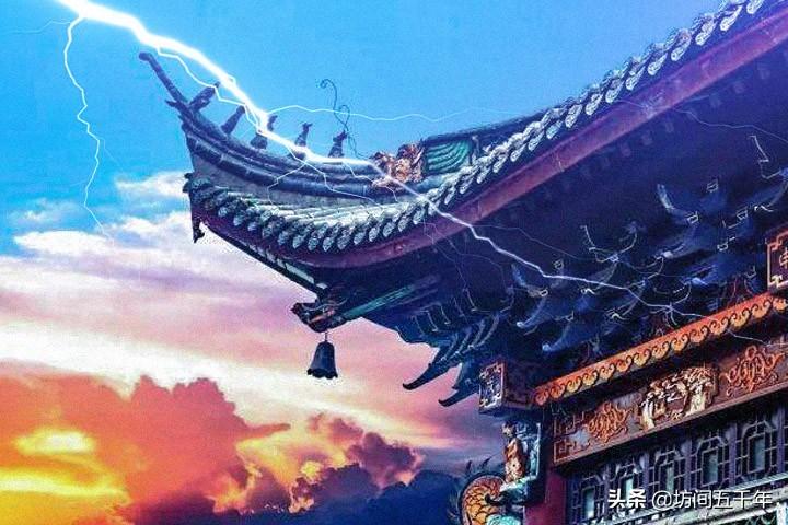 早在富兰克林发明“避雷针”之前,就有法国人在《中国新事》里描述了我国古建筑在屋顶的“翘角龙头”处有铁丝引入地面实现避雷的设计,证实了我国古建筑很早就具备了“避雷针”。