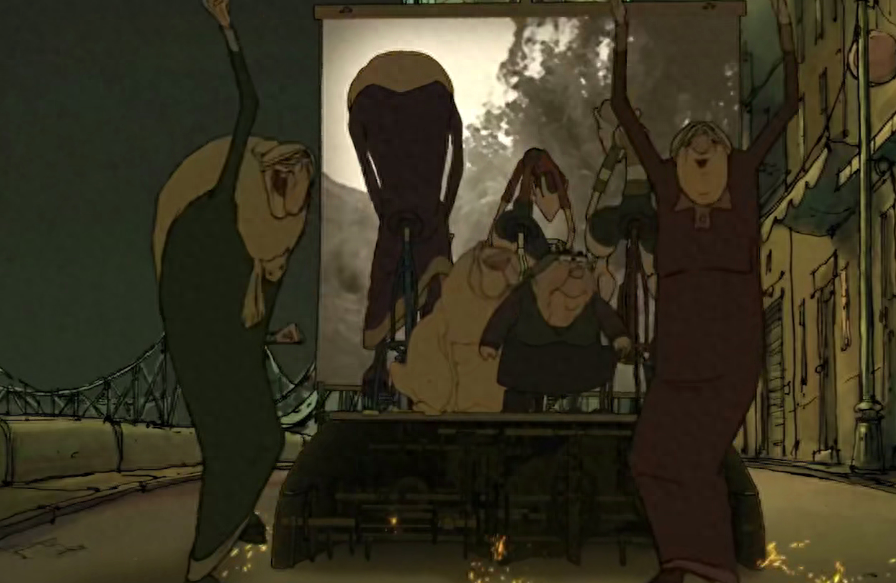 《疯狂约会美丽都》这部动画不仅包含了人性的光芒,还不断通过对比让人反思现今与过往。这部电影没有过多强调亲情至上,但还是夹杂了奶奶对孙子的爱与无奈;而美丽都重唱三姐妹则向我们展示了同富贵共患难的真挚友谊,而查宾奶奶与三姐妹之间则展现了萍水相逢依旧保留了各自仅存的善意。哪怕生活艰难,人们依旧散发着至情至性的光芒,那才是平凡生活中最原本的样子。